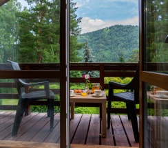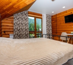 Уютные двухместные номера повышенной комфортности, которые располагаются в коттедже из алтайского кедра. Общая площадь номера — 24кв.м. Номера с балконом, вид на гору.