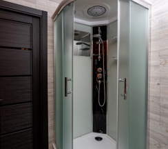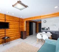 Номер «Апартаменты» это большой двухкомнатный номер. Он прекрасно подойдет для семьи, состоящей из 4 человек или небольшой компании друзей. В номере спальня и гостиная с кухонной зоной. В спальне: двуспальная кровать, шкаф, стулья. В гостиной: кухонная зона, диван, обеденный стол, стулья, индукционная плитка, микроволновая печь, набор посуды, холодильник, телевизор, доступ к сети wi-fi. В ванной комнате - санузел с душевой кабиной, махровые халаты, фен.