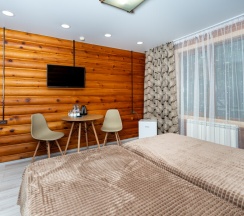 Уютные двухместные номера повышенной комфортности, которые располагаются в коттедже из алтайского кедра. Общая площадь номера — 22кв.м. Номера без балконов, с видом на гору.