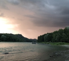 На берегу Катуни, очень хорошо. Тихо и спокойно