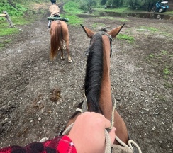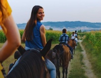 Очень спокойная прогулка с прекрасными лошадками по красивым местам. Полное умиротворение и релакс. Единственное, что немного скучновато идти шагом в колонне и нельзя галопом и рысью стартануть по полю. Но эти моменты просто надо заранее уточнять перед прогулкой и уже соглашаться или нет с этими условиями