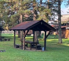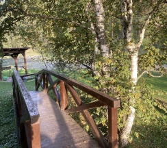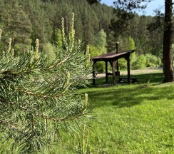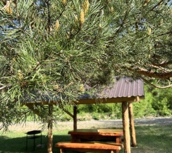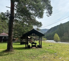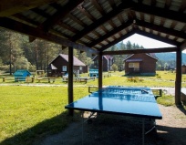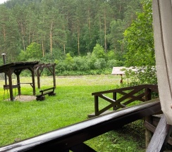 Из плюсов: очень невысокая цена проживания, тихое место, очень чисто, завтраки включены (шведский стол) не очень замысловатые, но вкусно. На территории детская площадка, беседки у реки, жаркая баня и качели.