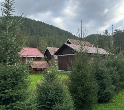 Очень ухоженная территория,красивые ёлочки,уютно там находиться.вкусная еда в кафе.жили в домике "Семейный"люкс-снимаю одну звезду за ужасный старый,неудобный матрас,отсутствие фена и лопатки для обуви(вроде бы мелочь-но очень этого не хватало)