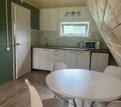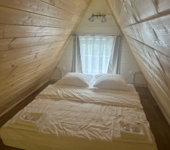 Красиво, ухожено. Но: постельное белье очень ветхое, в А-фрейме, домике на 4 человек нет шкафа!!! Стоит стойка для вешалок и 4 вешалки! Ни полочки, ни пуфика, вещи 4 человек равномерно распределены по полу….