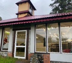 Номера опрятные, в хорошем состоянии, почти во всех номерах есть душ и туалет, также есть общая душевая на этаже (на одного человека), которая тоже вполне себе хорошая. Стоимость за номера приятная, не завышенная. Есть игровая зона для детей в помещении, зона для перекуса (столы/стулья), общий холодильник, чайник. На территории есть кафе, еду готовят очень приятные, милые женщины. Еда неплохая, стоимость не завышенная.