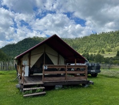С удовольствием остановились на денек в глэмпинге. Очень комфортный домик со всем необходимым внутри и даже большим. Уютно, чисто, аккуратно, огромная ухоженная территория. Также поехали на 3 часовую прогулку в горы на лошадях — очень понравилось! Огромное спасибо нашему гиду Евгении. Лошади чудесные, виды замечательные.