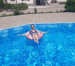 Чистый бассейн, недорогой бар у него же, ресторан на территории, которая, кстати, ухоженная и закрытая, мангал и детская и волейбольная площадка. В общем, есть все для комфортного отдыха, в том числе с детьми. Приехали на один день, но нам так понравилось, что с семьей остались еще на один). Номер был без кондиционера, на третьем этаже было жарко, но так как в номере мы были только ночью, поэтому терпимо. Номера в целом чистые (в одном месте была паутина и деревянная стружка), полотенца, тапочки, шампунь и гель для душа в наличии. В целом, за такие деньги, на мой взгляд, лучше не найти. Да озера и магазинов с кафе несколько минут на машине.