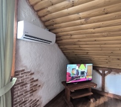 Хорошее место, уютные номера по приемлемым ценам, все необходимое есть: шкафы, зеркало, чайник, холодильник, телевизор, фен, душевая кабина. Все чисто, администратор очень вежливая, всегда поможет. Территория оборудована, есть подогреваемый бассейн, беседки, детская площадка. Шведский стол на завтраки, а в течение дня можно поесть в кафе у бассейна