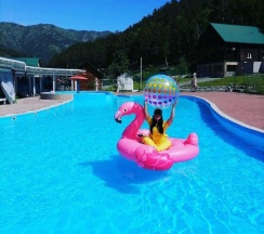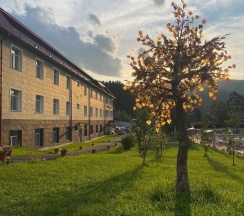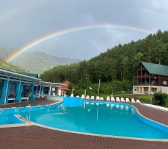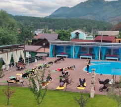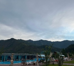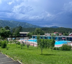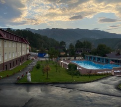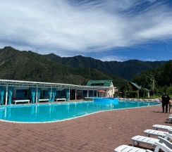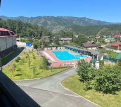 Добрый день! Отдыхали с семьёй с 29 июля по 1 августа. Замечательное место. Все что необходимо для комфортного пребывания. У нас был номер Люкс двухкомнатный, для деток комната и спальня с шикарной кроватью. В каждой комнате своя убрная, душ. Халатики, тапочки, все принадлежности для гигиены, есть чайник, микроволновка, холодильник, посуда, телевизор. Всегда чисто, приветливый персонал. Отдельная любовь к бассейну, не хочется выходить. Так бы и сидел в нем целый день. Радует то, что уровень воды в бассейне идёт на углубление- деткам и взрослым комфортно. Не сидишь в "легушатнике" как в других местах отдыха. Для малышей есть отдельный мини бассейник.))) У бассейна прекрасные лаунж зоны, где с семьёй отдыхаешь целый день, прилечь, почитать, перекусить и т.д. С малышами так вообще удобно. Покушать можно в любой момент в ресторане. В течении 5-10 мин приносят еду. Блюда вкусные на любой вкус. Думаю, есть какие-то пакетные услуги, где "еда" включена, но нам так не особо подходило так как много гуляли. Супруг с детьми нашли тропу в гору за отелем выше, поднимались. Гуляли до ГЭС, там тарзанка, конные прогулки по тропе. Кто по активней, берут прогулку на катере, я не решилась)))