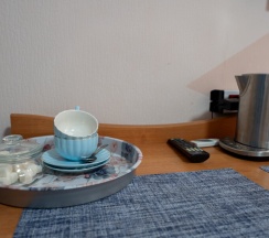 · Чайная зона: Электрический чайник, чай, сахар и чайная пара позволят в любой момент приготовить горячий напиток, не выходя из комнаты.