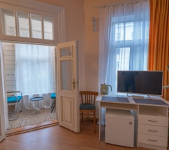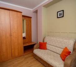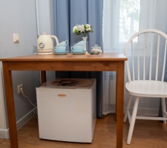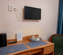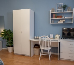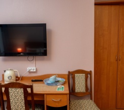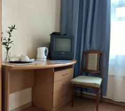 · Полное оснащение: В номере есть всё для работы и отдыха: письменный стол, стул, шкаф, телевизор и холодильник.