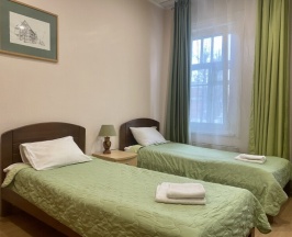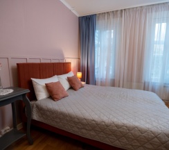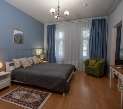 Этот номер создан для полноценного отдыха! Вас ждет отдых на двуспальной кровати с ортопедическим матрасом и полное расслабление благодаря берушам и затемняющим шторам «блэк-аут». Все окна выходят во внутренний двор.