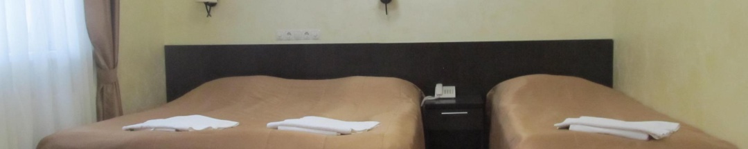 Номера свежие, просторные. Всё чисто, есть тапочки, мыло, щетки, шампуни, гели.