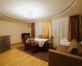 Номер категории «Семейный Люкс». Просторная гостиная, плавно переходящая в обеденную зону, станет идеальным местом для отдыха и общения всей семьи. Две отдельные спальни обеспечат максимальную приватность. В первой спальне вас ждет двуспальная кровать и телевизор. Вторая спальня располагает двумя односпальными кроватями и также оборудована телевизором. Для вашего удобства в номере предусмотрены: кондиционер, холодильник, микроволновая печь, чайник и полный комплект столовой посуды. Мягкие банные полотенца, полотенца для лица и ног, а также пеленка для медицинских процедур уже ждут вас. При необходимости мы можем установить дополнительную кровать, в том числе детскую.