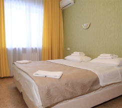Просторные и светлые двухместные номера категории «Стандарт» созданы для вашего комфорта. В каждом номере вас ждет: удобные односпальные кровати, легко трансформирующиеся в одну двуспальную, вместительный двухстворчатый шкаф с плечиками для одежды, холодильник для хранения продуктов и напитков, телевизор с пультом для приятного времяпрепровождения, журнальный столик для вечернего чаепития, тумбочка, стул и зеркало. Мы также позаботились о необходимых мелочах: банные и лицевые полотенца, а также пеленка для медицинских процедур уже ждут вас в номере. Индивидуальная туалетная комната с душевой кабиной обеспечит максимальное удобство и приватность.