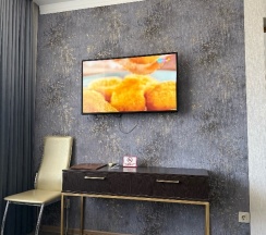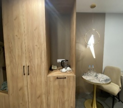 Отель нам понравился, номер люкс чистый, обстановка достойная, очень удобный диван, матрас и подушки тоже порадовали. Оригинальные точечные светильники в виде птиц интересный акцент в интерьере, но из них работает только один. Возможно, просто надо поменять лампочки. То есть, в комнате с диваном не получится создать умеренное освещение. Ванная комната тоже красивая, чистая, удобная, но вот в душе помыться затруднительно. Во-первых, вода течёт еле-еле, напора нет, как будто тебя из маленькой леечки поливают; во-вторых, моешься либо горячей, либо холодной водой, настроить комфортную воду не получается. Хорошо, что мы только сутки жили. Ужинали и завтракали в ресторане при отеле. Завтрак шведский стол, все отлично. А вот заказ на ужин, и разок зашли на чашку кофе, устанешь ждать. Видимо, на кухне не хватает расторопных поваров. К официантам претензий никаких нет, к качеству блюд тоже.