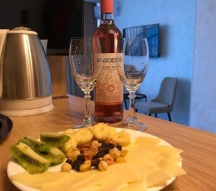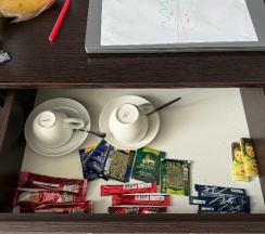 Номер тоже был очень хороший (двухкомнатный, санузел большой, современный, комплимент от отеля - много пакетированного чая и кофе, вода, шоколадки Алёнка).