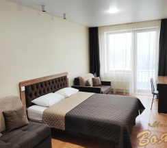 Удобное расположение для путешествующих, чистота и комфорт в номере. Останавливались в полу-люксе втроём,места достаточно. Заметили, что размер ванной комнаты почти такой же как сама комната. Питание в кафе шаговой доступности, от отеля талон на 100 рублей в частые бонуса. При закрытых окнах почти не слышно поездов, которые проходят метрах в 300 от отеля. В целом-рекомендую