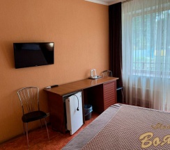 Чисто, уютно ..вежливый персонал! В номере ( котором жил пару дней ) ,телевизор кондиционер чайник выход на балкон.В коридоре есть кулер и микроволновка . Рядом сосновый парк !дорожки освещаемые . Вечером пройтись ..шикарно, не смотря на наличии ж/ д пути и трассы. Если напрягают посторонние звуки ,по ищите другой отель. В целом мне понравилось!