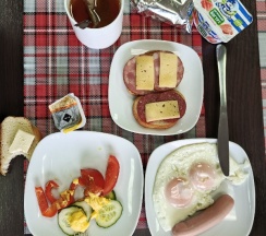 Заехали ночью переночевать. Заселили быстро, предоставили раскладушку дополнительную для детей. В номере чисто, уютно. Завтрак вкусный