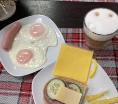 ЗАВТРАК. Каждый день -разные блюда плюс всякие нарезки, фрукты, йогурты. Приготовлено вкусно, с учетом пожеланий.