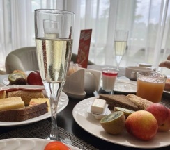 Понравились вкусные и разнообразные завтраки,трансфер на море и абонементы на пляж.Сотрудники на ресепшен вежливые.Горничные делали уборку отлично.Пополняли шампунь,мыло,гели для душа своевременно.
