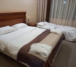 Хороший отель в минутах 15 от ж/д вокзала. Завтраки шведский стол, выбор блюд разнообразный. Имеется полноценный крытый спортивный бассейн с сауной и тренажерка, которыми могут пользоваться проживающие.