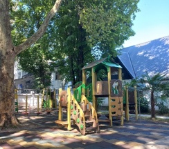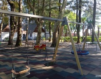 Зелёная тенистая территория располагала к вечернему отдыху в беседках, пока дети выпускали пар на спортивной площадке. (Баскетбольные кольца, теннисные столы, волейбольная сетка) для маленьких есть качели, песочница, детский комплекс. Ничего шикарного, но все целое, яркое. Дети играют с удовольствием.