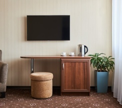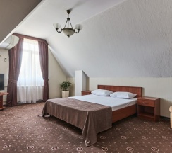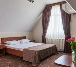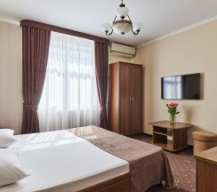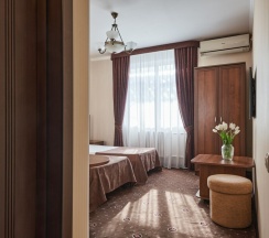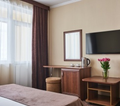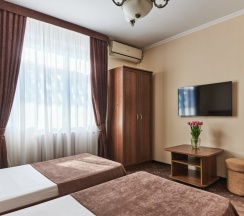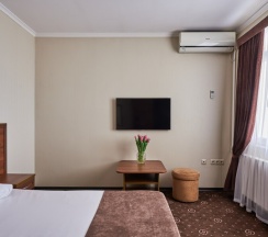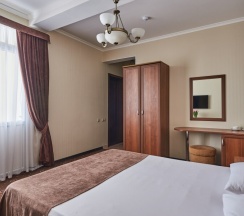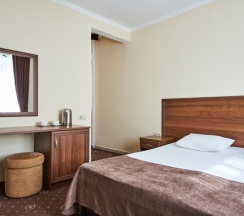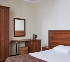 Стандарт с одной двуспальной кроватью или 2 отдельными кроватями . Расположение номеров с четвертого по шестой этаж. Напольное покрытие - ковролин. В номере имеется холодильник, телевизор, кондиционер сплит-система, фен, журнальный столик, электрочайник, стаканы. В номере собственный санузел, в котором установлена ванная. Номера комплектуются набором полотенец на каждого гостя (банное, лицевое и полотенце для ног). В ванной комнате есть жидкое мыло, шампунь ,гель для душа. В номере без предоставления дополнительного места и без дополнительной оплаты может проживать ребенок в возрасте до 4 лет (2+1).