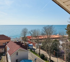 Удобное расположение - до моря 2 минуты медленным шагом. Хорошие номера. Чистое бельё. В номере есть полотенца, фен, сейф, чайник, чашки, сушилка для белья, гель и шампунь, туалетная бумага, холодильник, телевизор, кондиционер. Вежливый персонал от администратора до горничной. Последняя каждый день стучалась в номер и спрашивала нужно ли прибраться, выбросить мусор и нужны ли ещё средства личной гигиены. Жили на 4 этаже. Есть лифт, что очень удобно после долгих прогулок и купания в море. По соседству одноименная столовая с прекрасной и вкусной едой за демократичную цену. В следующий раз обязательно к вам. Небольшой минус - продавленные матрасы, но не критично.