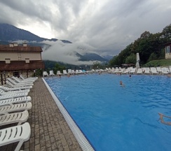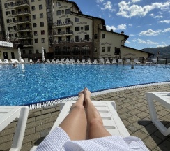 Прекрасный отель, самый лучший бассейн в Красной Поляне! Питание на высоте, а вид на горы из номера просто завораживает!