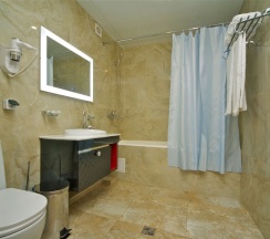 Из минусов: сразу не работал телевизор "нет сигнала ", днем сделали или сам заработал, сломана крышка мусорного ведра, туалетная бумага серая из времён СССР насаженная на ржавый держатель. Вайфая в номерах нет, на ресепшене есть, но раздача медленная для галочки. Теле2 сигнал везде хороший, спасает, Мегафон был на нулях через пару ней заработал на отлично.