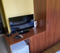 В номере всё самое необходимое: кондиционер, чайник, телевизор, полотенца, шампунь, мыло. На этаже есть гладильная доска, сушилка для белья и микроволновая печь.