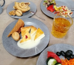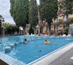 Понравилось все , расположение , теплый бассейн, рядом остановка от которой можно доехать до всего недалеко. Очень понравилось что возле моря , но улица не оживлена а тихо и спокойно, в бассейне прохожие не заглядывают , отдыхала одна с двумя детьми мне было очень удобно и комфортно в проживание , завтрак очень вкусный и разнообразный, детям до трех лет бесплатно, пробовали каши в столовых недалеко не понравилось , в гостинице была очень вкусная каша которую дети всю съели .