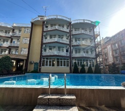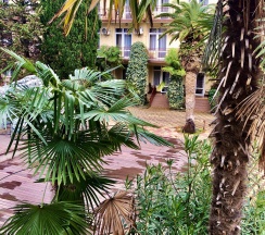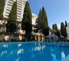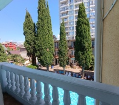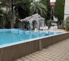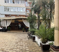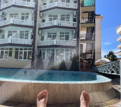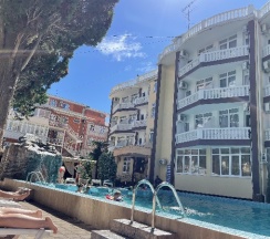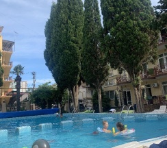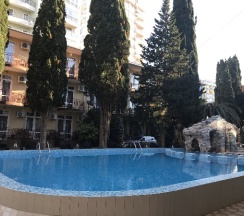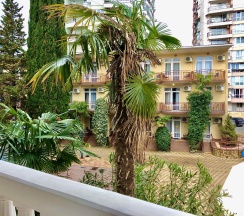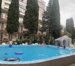 Отдыхала прошлой весной в Сочи и на пару дней остановилась в этом районе, выбрала этот отель и забронировала стандартный номер, при заселении, мне сказали, что заменили мой номер на апартаменты (по внутренним причинам), причем за ту же цену — это была огромная, красивая квартира на 5-м этаже с видом на море! Из окна можно любоваться закатом😍 До моря 3 минут пешком! Во дворе бассейн с лежаками.