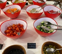 Отдыхали в мае. Все понравилось, в номере чисто, халаты махровые, не вафельные. Персонал вежливый. На завтрак все вкусно, но кроме сосисок мясного нет ничего. Были блинчики в одной емкости, но почему то ассорти. Мне достались с яблоком, мужу повезло больше, ему с мясом)) На территории есть небольшая детская площадки и даже кролики. В бассейне вода теплая.