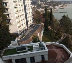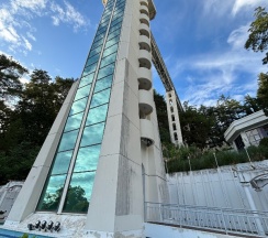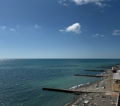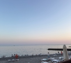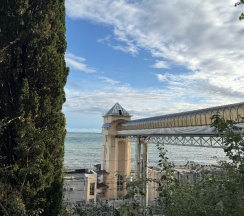 До моря близко, вода чистая, пляж ухоженный. Но спуск — на двух лифтах, стоит учитывать.