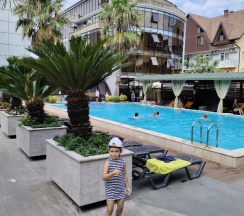 Хороший отель, чисто, отдыхающие обеспечены всем необходимым. Питание- шведский стол- разнообразно, вкусно, с учетом предпочтений разных вкусов. Хороший подогреваемый бассейн. Очень близко море, идти буквально 5-7 минут. Аниматоры для детей и большая игровая площадка Особая благодарность горничной по имени Галина ( корпус А)! Любой вопрос решается быстро, персонал вежливый и заботливый.