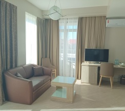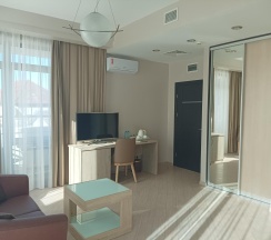 Прекрасный отель, оправдывает свои 4 звезды. До моря 5 минут, рядом кафе, рестораны, магнит. Уборка, смена полотенец каждый день, смена белья и тапочек через день. Чай, кофе, сахар, чайник в номере. Большой балкон со столиком и креслами. Обильные разнообразные завтраки. Очень рекомендую