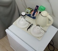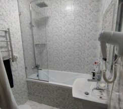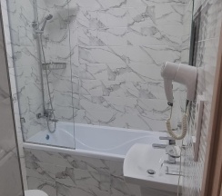 Были в первом корпусе на 1 этаже номер стандарт, маленький, но удобный. Даже был столик под телевизором. На обратном пути нас заселили во 2й корпус тоже на 1 этаж. Номер примерно такой же, но супер неудобный. В душевой только 1 створка, шторки нет, вся вода на полу. На второе спальное место можно пройти через узкий проход у стены, на котором висит телевизор, который случайно можно снести. Даже хрупкой девушке.