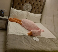 Что могу посоветовать владельцам: в нашем доп. Корпусе номер 211 сильно пахло в туалете то ли из вытяжки , то ли из канализации; полотенцесушитель очень странный, то работает то нет; конкретно в нашем номере балкона нет , белье нигде не просыхает , нужно придумать что-то для таких номеров. И подушки ну очень мягкие, или мы так привыкли спать на других…
