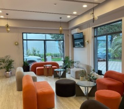 Хороший отель со своими СПА-центром и пляжной зоной, в первой линии у моря, с красивыми видами на море и на горы. Звукоизоляция в номерах недостаточная. И надо учитывать близость к аэропорту, шум самолётов перманентный.