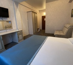 Отличный отель. Отдыхаем пока здесь 3й день, все нравится. Заселили раньше времени, но это учитывалось в момент бронирования. При оплате наличными сделали небольшую скидку, что приятно). Номер 2х местный стандарт, оказался лучше чем ожидала. Неплохая мебель, ремонт тоже или свежий, или хорошо все сохранилось. На полу ламинат, в зоне прихожей плитка. Белоснежное постельное и полотенца. Удобная кровать. Сан. узел просторный, в том числе и душевая, сделано все грамотно, вода из душа не попадает на пол общей комнаты ванной. Электронный полотенцесушитель в ванной это супер) В номере фен, минимальный набор посуды на 2х, на каждом этаже кулер с холодной и горячей водой. Отсутствие чайника в номере меня никак не напрягало. На рессепшен приятные администраторы, каких-то проблем у меня не возникало, тем не менее минимальные вопросы решались быстро. В отеле есть хороший лифт, на 6м этаже смотровая, летом там и отдыхать можно и загорать, отличный вид на море. Окна нашего номера выходили на Олимпийский парк - видно стадион Фишт, сбоку частично видно море. Завтраки нормальные, голодным не уйдешь)