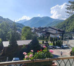 Отличное место . Проживали несколько дней, недалеко от канатной дороги альпика 30-40 метров . Напротив ресторан про хинкали. Номер с балконом , с прихожей и двумя кроватями и раскладной диван . Завтраки входили в стоимость , хорошие завтраки , все чисто вкусно , персонал приветливый . Рядом так же канатная дорога Роза хутор . Можно пешком минут 15, но мы ездили на такси 5 мин так как были со снарягой.