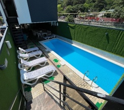 Оочень хороший отель. Всех плюсов и не перечесть. Чистота идеальная,как будто только после ремонта. Два бассейна. На улице с ночной подсветкой.Очень красиво. До моря минут 5-7 прогулочным шагом по асфальтовой дорожке вдоль речки. В стоимость проживания входит помещение бани. В шаговой доступности магазины и кафешки. Вобщем идеальное место для идеального отдыха.