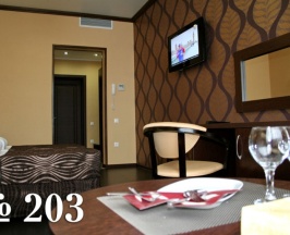 Тщательно продуманные интерьеры, комфорт и уют создают идеальные условия для полноценного отдыха либо деловых поездок.Все номера категории «люкс 2-комнатный» оснащены комплектами удобной современной мебели: двуспальными «французскими» (в номерах 208 и 209) или раздельными (в номере 207) кроватями с прикроватными тумбочками и настенными бра, удобными диванами, рабочим столиком, шкафом для одежды и вещей, коктейльным столиком, набором посуды, бокалов и фраже.