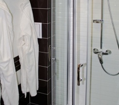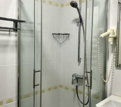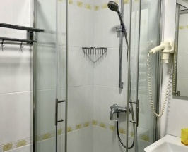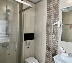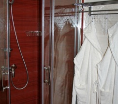 Ванная комната оборудована современной сантехникой: санузлом, душевой кабиной, раковиной, феном. Для каждого гостя приготовлены: халат, тапочки, набор банных и пляжных (в летнее время) полотенец, туалетные принадлежности: шапочка для душа, мыло, шампунь, гель для душа, зубная паста и щётка, бритвенный станок.