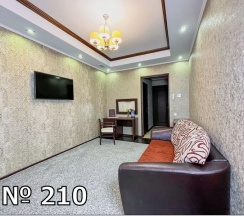 Это трехкомнатный номер повышенного комфорта, рассчитанные на проживание двух и более гостей. Номер 210 состоит из гостиной и двух спален площадью 44 кв. м. и расположен на втором этаже гостиницы.Из окон номера открывается прекрасный вид на море.