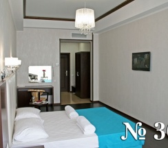 ..Это двухкомнатные номера повышенного комфорта, рассчитанные на проживание двух и более гостей. Номера 207, 208, 209 состоят из гостиной и спальни площадью 31 кв. м. и расположены на втором этаже гостиницы.Из окон номеров открывается прекрасный вид на море.