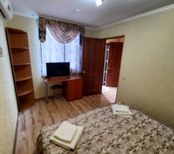 В номере две комнаты, одну из которых можно использовать как детскую. В вашем распоряжении душ, раковина, туалет, а также все необходимые гигиенические принадлежности. Для вашего комфорта в номере есть телевизор и холодильник. Общая летняя кухня позволяет самостоятельно готовить любимые блюда.